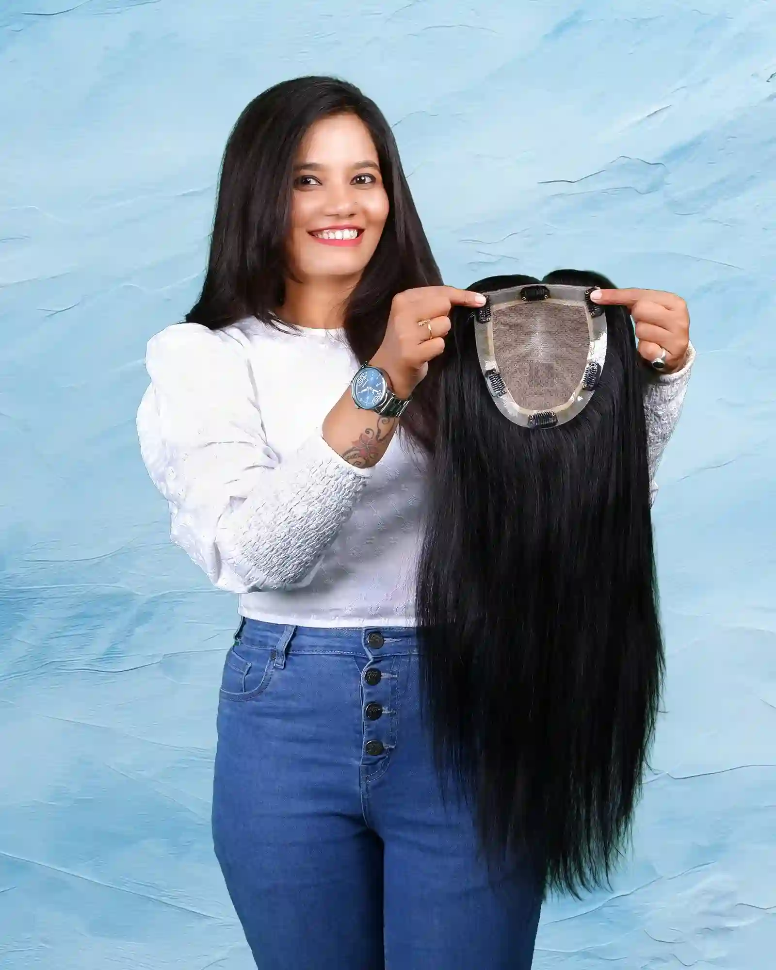 Our 5×6 Silktop Topper is made of 100% Human Hair. It is a perfect solution for hair loss, suitable for those experiencing a receding hairline, wide parting, thinning at the crown area, and overall volume loss.